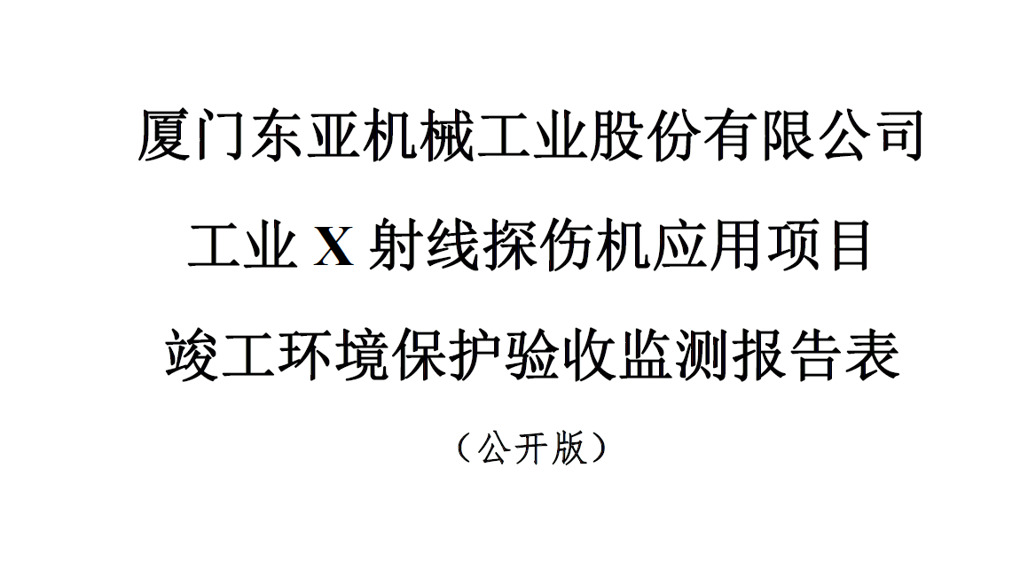 厦门东亚机械工业股份有限公司工业X射线探伤机应用项目 竣工环境保护验收公示