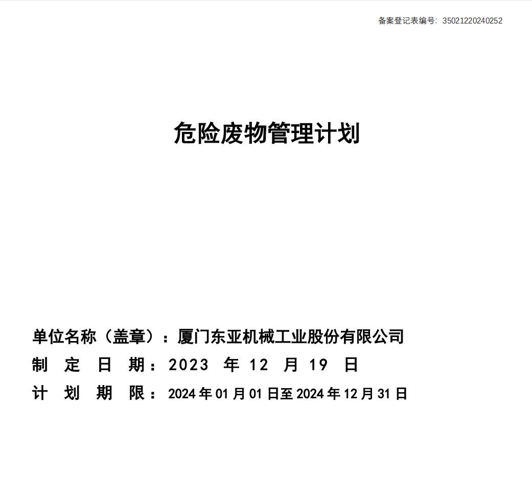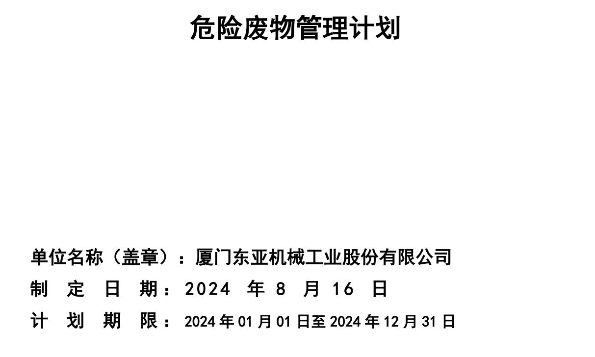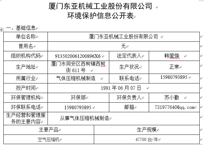 厦门东亚机械工业股份有限公司 环境保护信息公开表