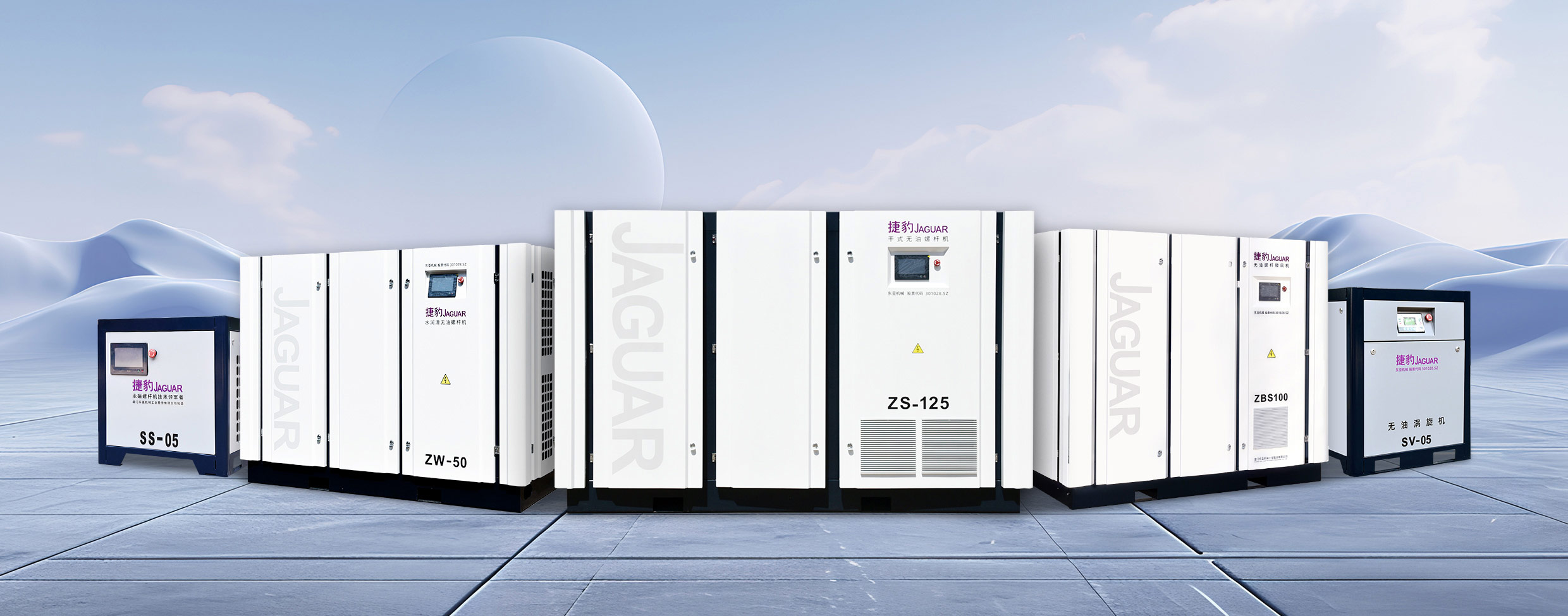从“无油纯净”的ZS干式螺杆机掀起行业清风,到“占高不占地”的XS-MAX赢得市场掌声;从集成式空压站AES系列适配千般工况,到ZLS-2iC Pro与ZLS-Hi⁺Pro以硬核性能重新定义能效标杆;再到稳静双升的“ES系列”持续进化ZGT”离心机的重磅问世……每一次新品亮相,都不是终点的欢呼,而是又一个起跑线的发令枪响。我们把“技术创新研发”写进KPI,更写进捷豹产品的每一处细节、每一次呼吸。