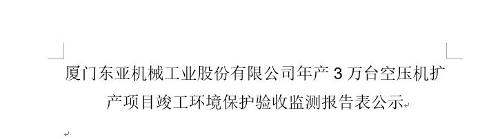 厦门东亚机械工业股份有限公司年产3万台空压机扩产项目竣工环境保护验收监测报告表公示